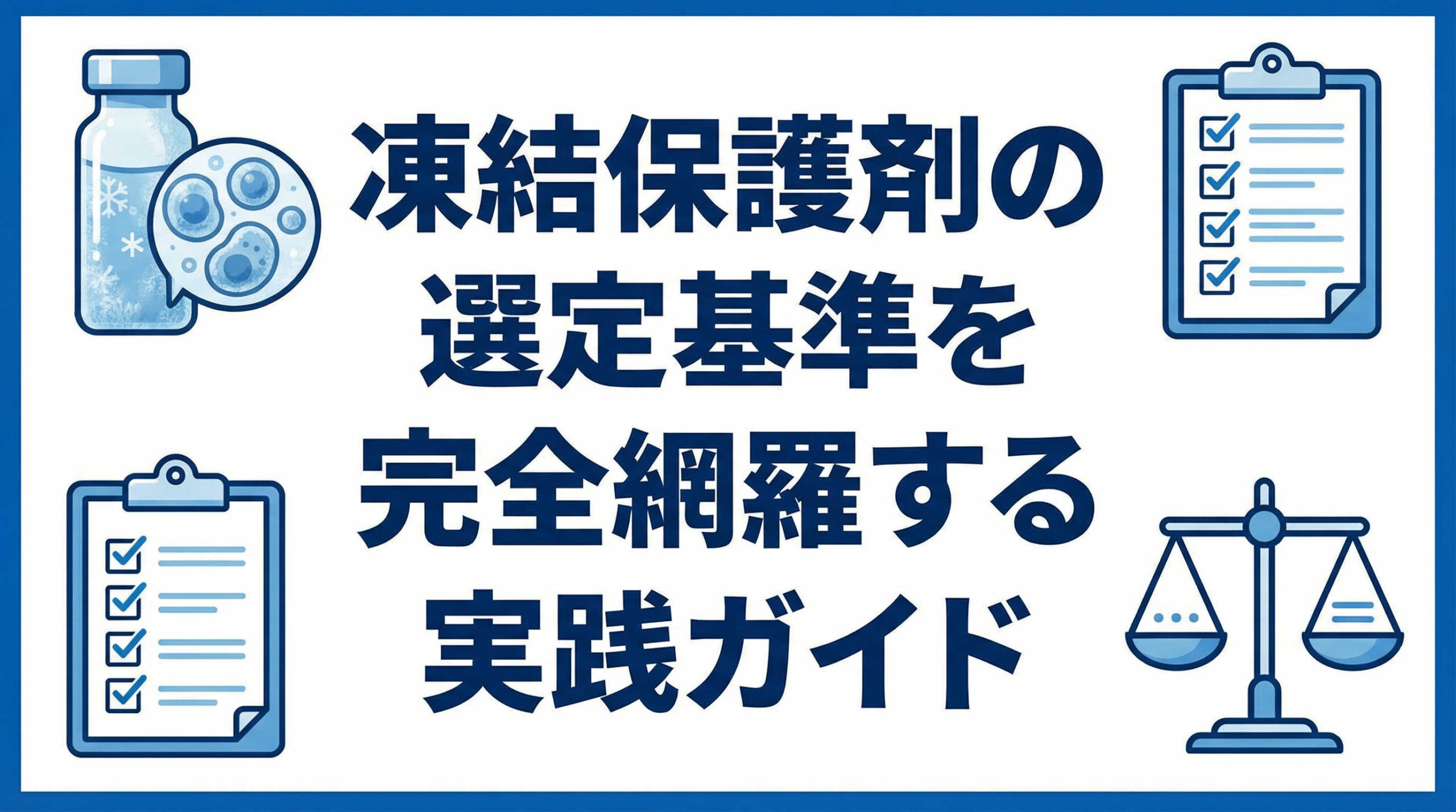 凍結保護剤の選定は、再生医療製品の品質と安全性を決定づける重要なプロセスです。結論として、以下の3点を軸に選定を進めることを推奨します。